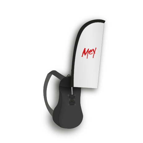 Der Rucksack aus beschichtetem Nylon dient als Tragegestell für die Fahne. Ein guter Halt wird dank der verstärkten Gurte und dem robusten Fahnenbefestigungssystem, welches trotzdem ein geringes Gewicht hat, gewährleistet. Durch einen verstellbaren Gürtel kann der Rucksack individuell angepasst werden und eine komfortable Polsterung sorgt dafür, dass der Rucksack angenehm zu tragen ist. Dank der Netztasche und dem Reißverschlussfach können in dem Rucksack auch andere Dinge als die Fahne transportiert werden. In einer praktischen Zusatztasche auf der Gurtseite lassen die Gestänge sich verstauen.