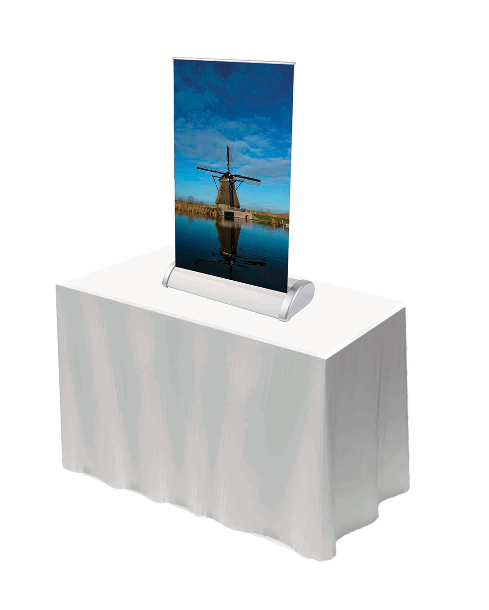 Das Roll-Up Mini ist kompakt und daher ideal, um Ihre Werbebotschaft auf Ihrem Schreibtisch, einer Theke oder einer Vitrine zu präsentieren und in den Mittelpunkt zu stellen. Das Rollbanner ist platzsparend, gleichzeitig aber auch sehr effektiv. Auch als Werbegeschenk für Ihre Kunden ist es wegen seiner kleinen Größe ideal geeignet.